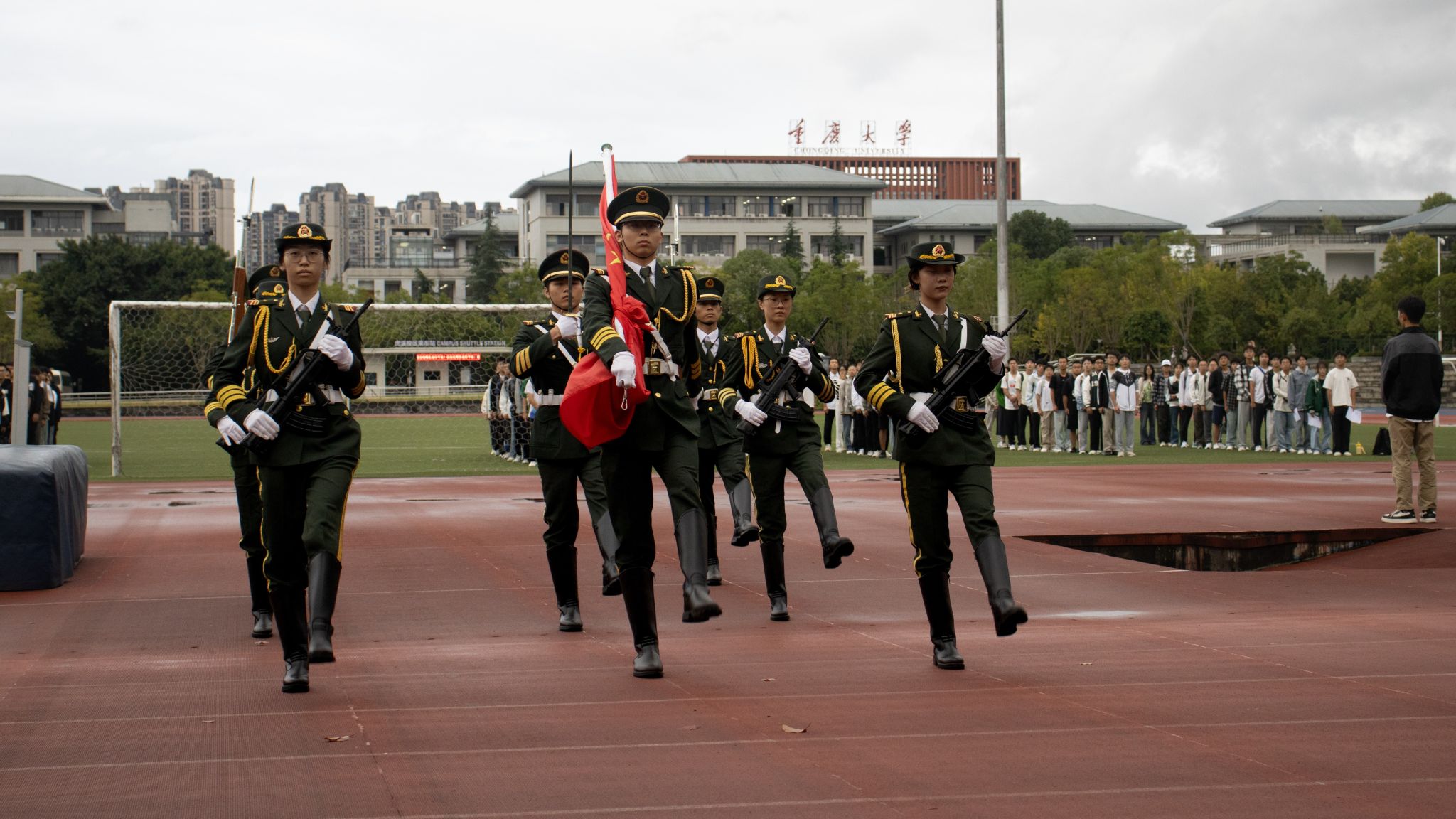 10月13日早上7点30分,重庆大学升国旗仪式在沙坪坝校区和科学城校区同步举行。升国旗仪式结束后,组织了“国旗下朗诵”“与国旗合影”等活动。本科生院组织学生在A校园和虎溪校园参加仪式。