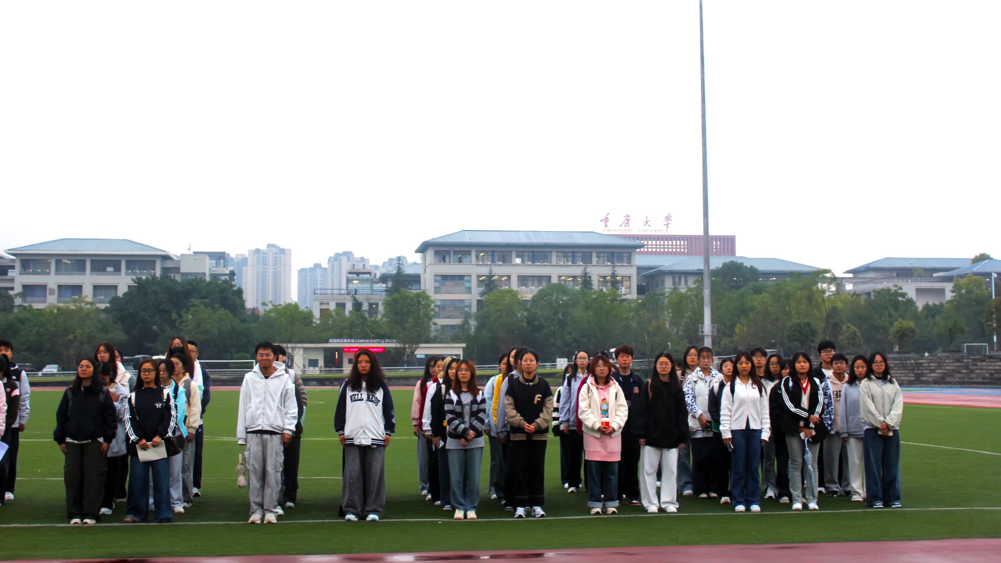 10月27日早上7点30分,重庆大学升国旗仪式在沙坪坝校区和科学城校区同步举行。升国旗仪式结束后,组织了“国旗下朗诵”“与国旗合影”等活动。材料学院组织学生在B校园参加仪式,外语学院组织学生在虎溪校园参加仪式。