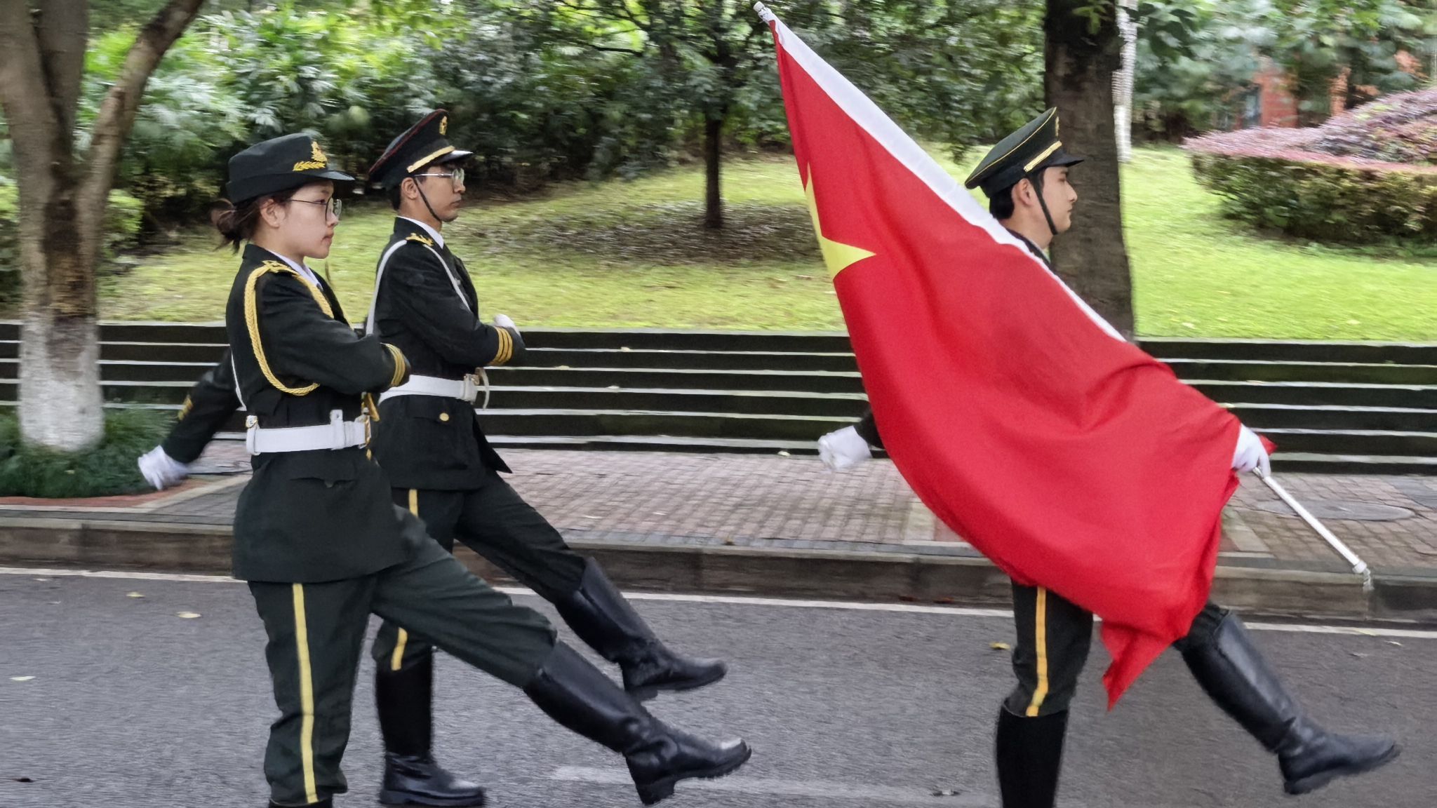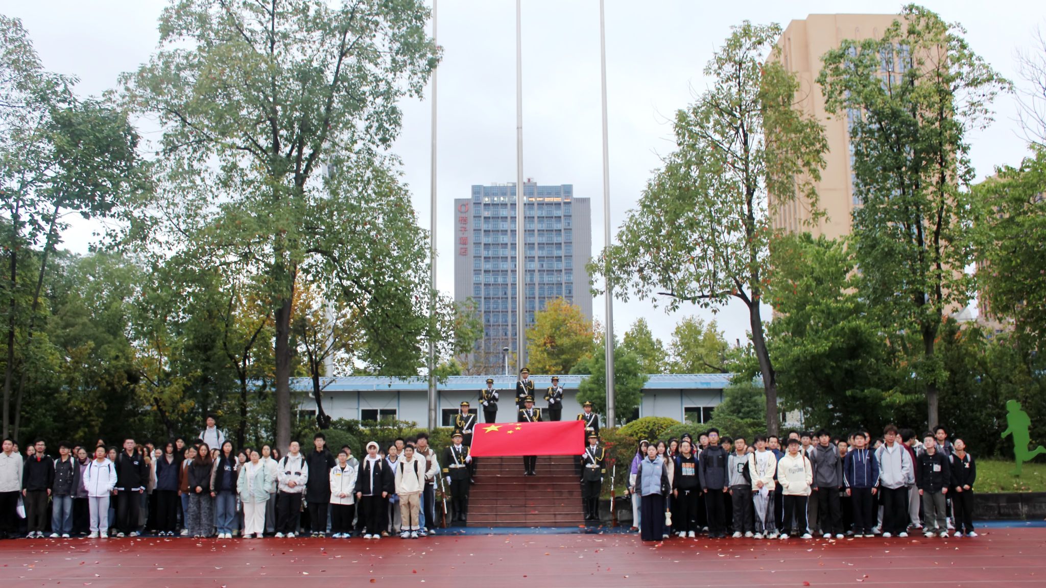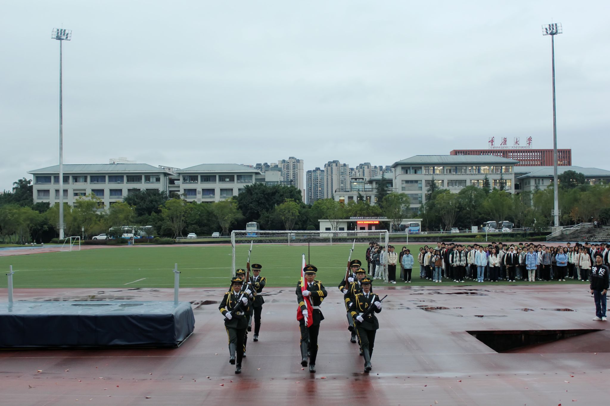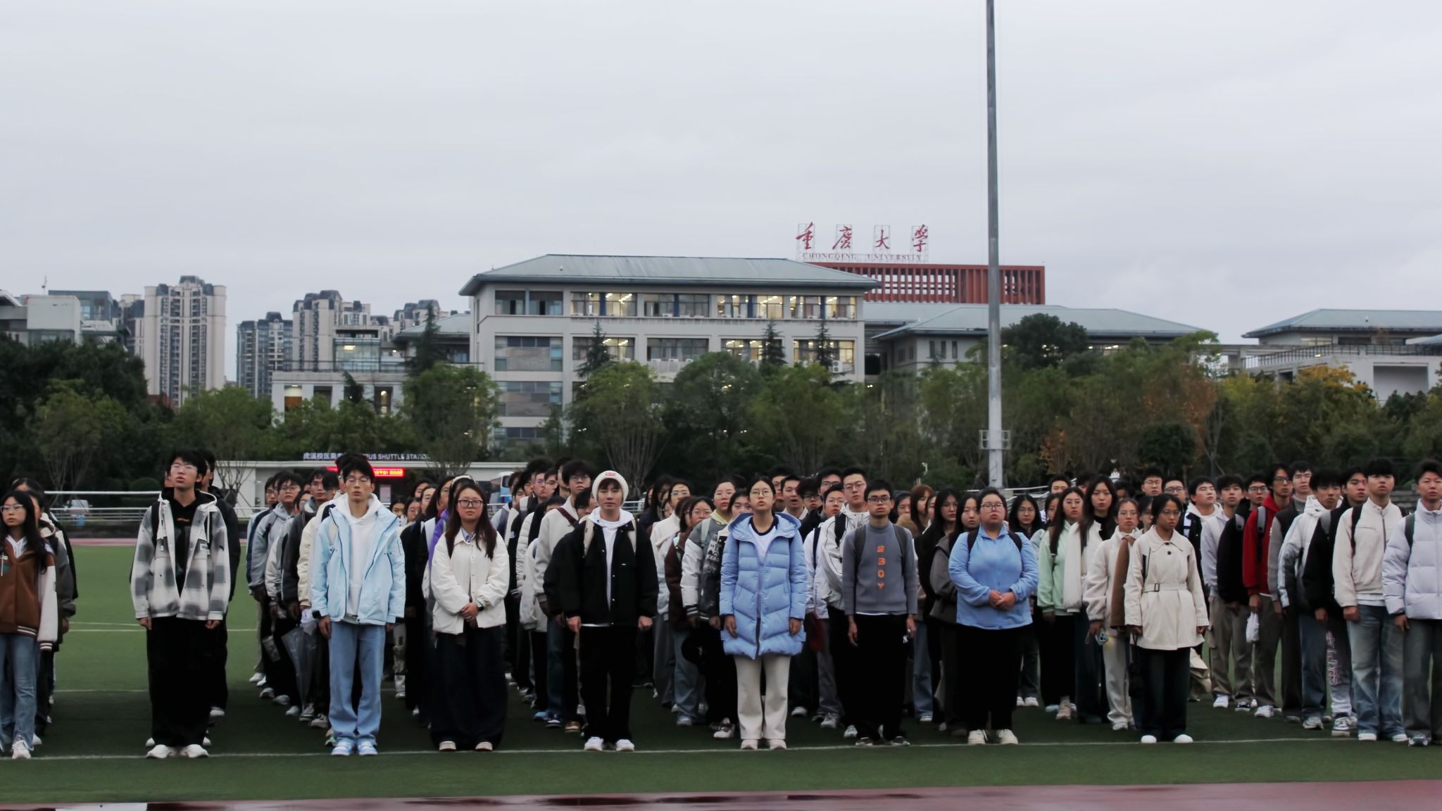 11月17日早上7点30分,重庆大学升国旗仪式在沙坪坝校区和科学城校区同步举行。升国旗仪式结束后,组织了“国旗下朗诵”“与国旗合影”等活动。建筑学院组织学生在B校园参加仪式,本科生院组织学生在虎溪校园参加仪式。