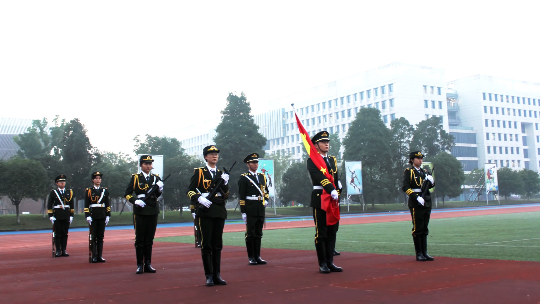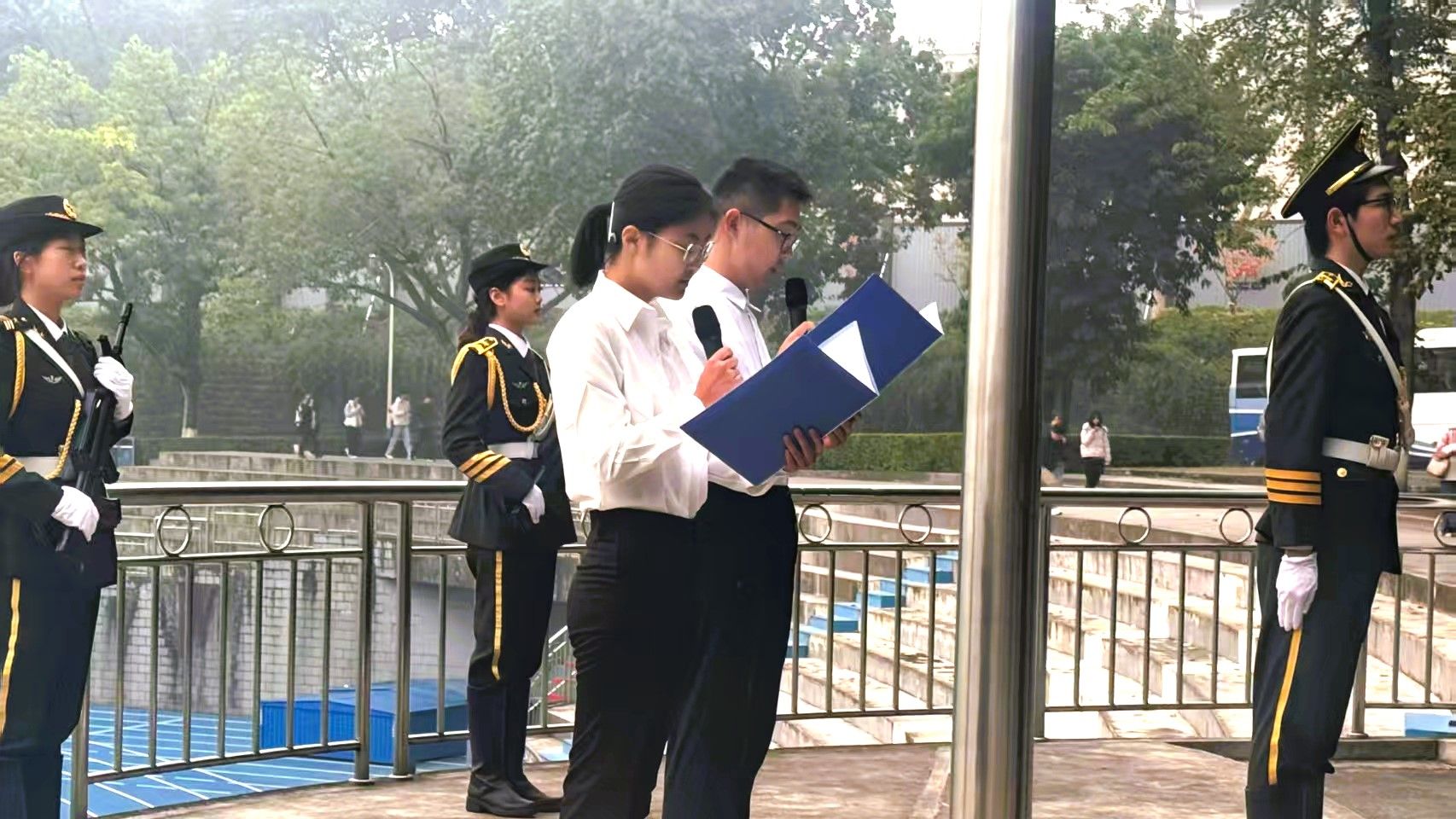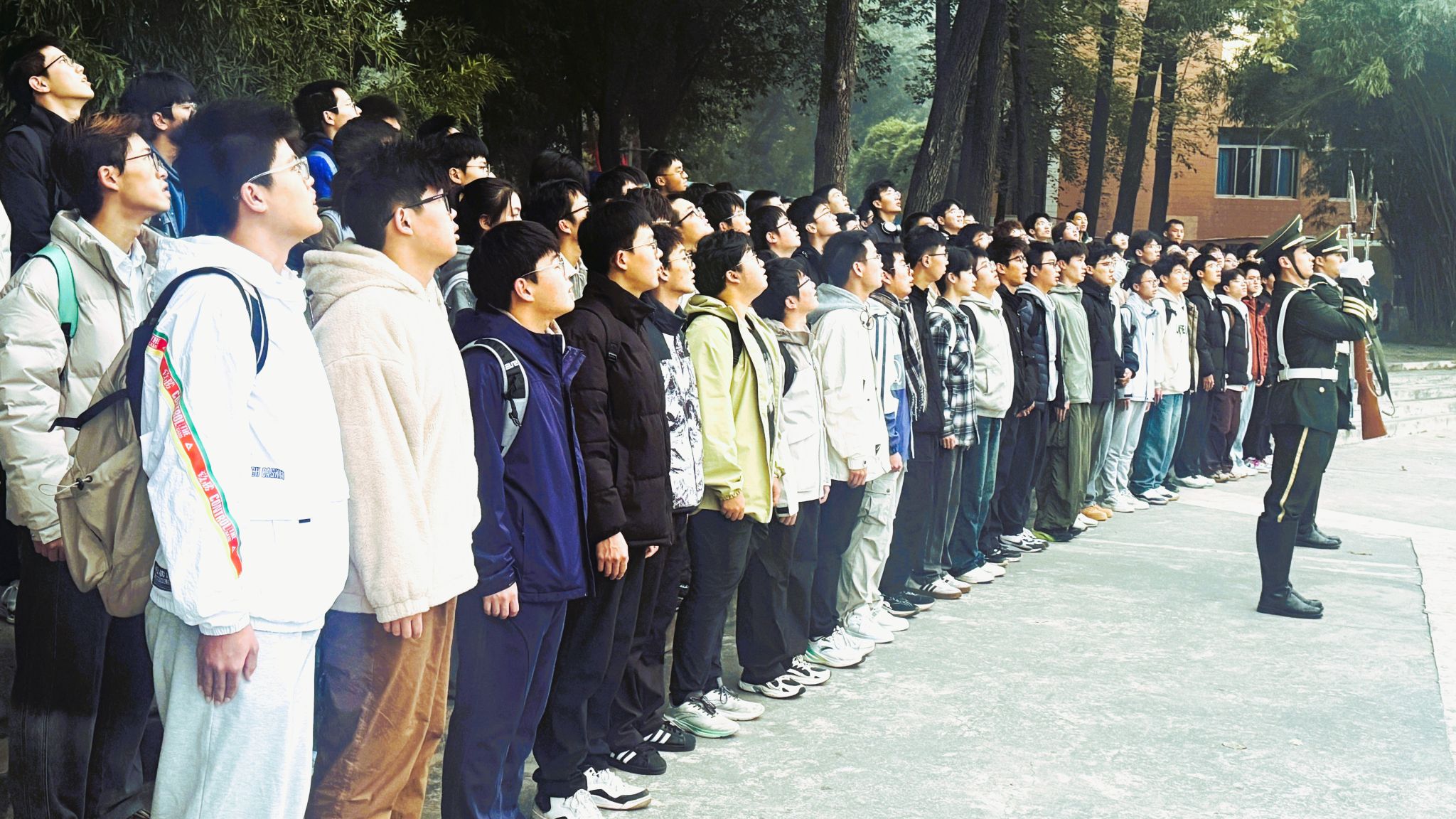 12月1日早上7点30分,重庆大学升国旗仪式在沙坪坝校区和科学城校区同步举行。升国旗仪式结束后,组织了“国旗下朗诵”“与国旗合影”等活动。本科生院组织学生在A校园参加仪式,物理学院、材料学院、化工学院组织学生在虎溪校园参加仪式。