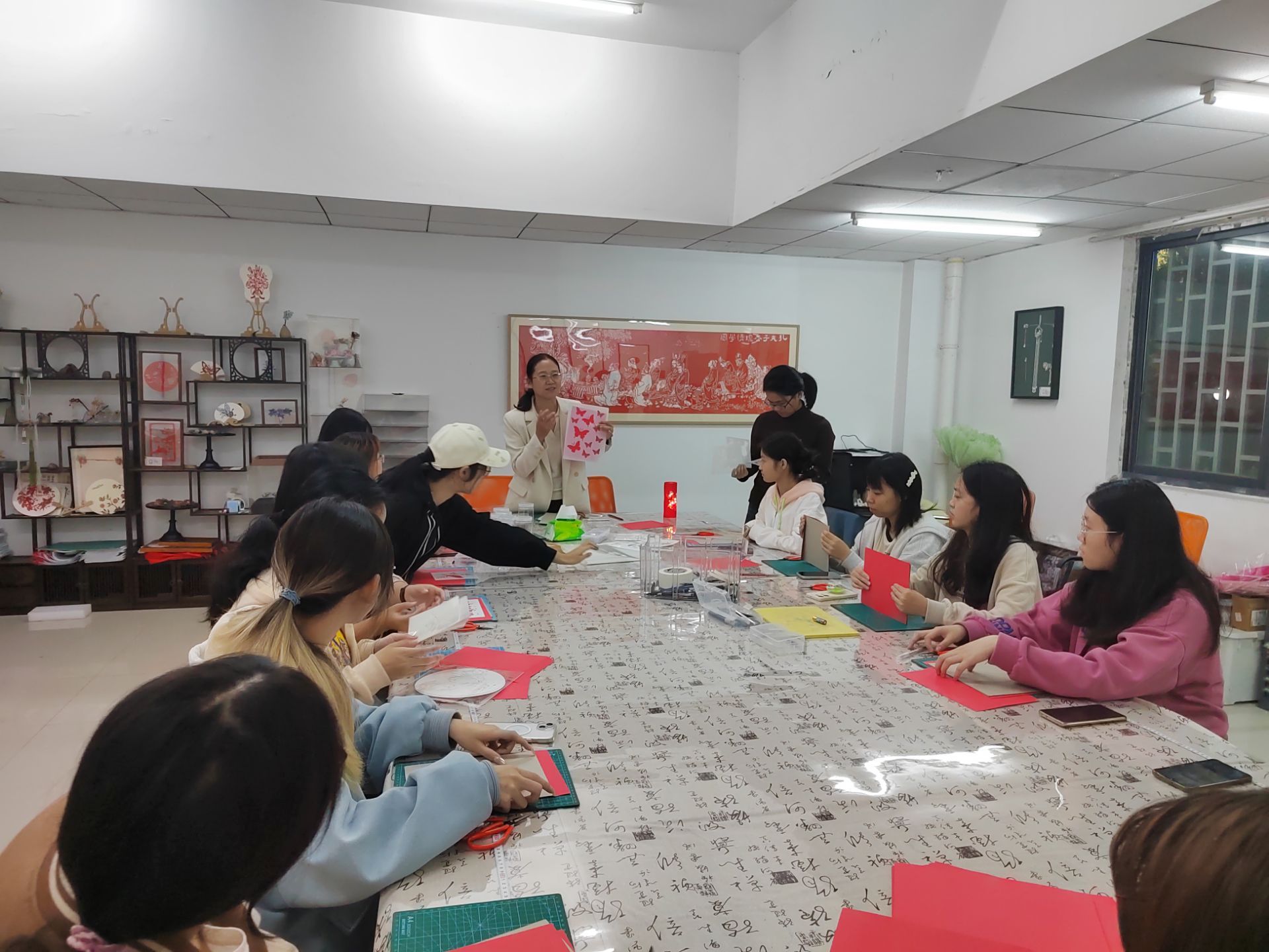11月1日晚,传统文化熏陶项目组国学风尚第32期剪纸活动在松园四栋113学生活动室顺利开展。本次活动的主题是剪纸灯笼,由外国语学院的向念担任主讲,社区指导老师童园园、杨逢原、李忆含协助指导进行。