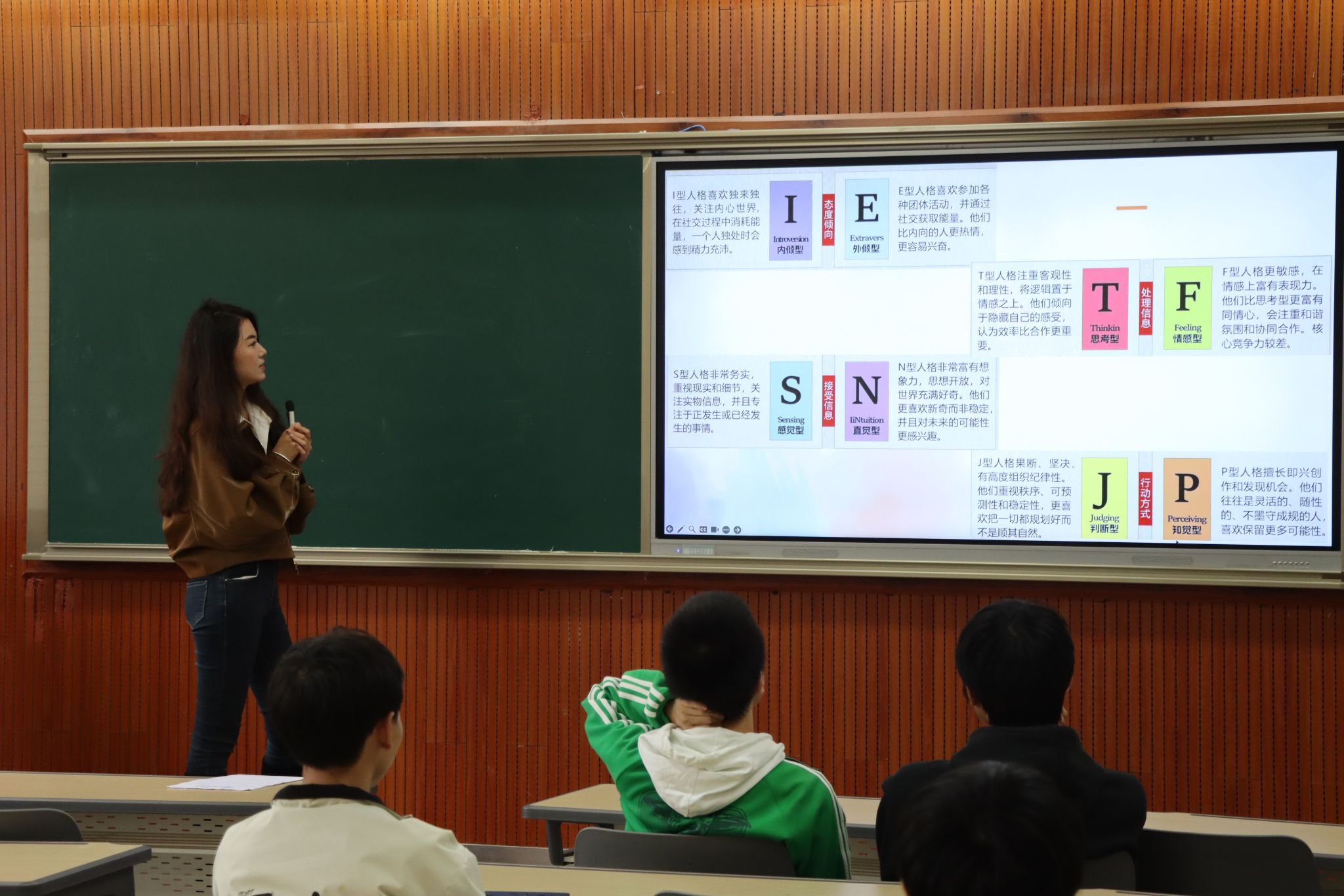活动伊始,外国语学院刘漫钰详细介绍了MBTI人格的四个维度和16种类型,以及每种类型的特点。之后,活动进入了分享环节。同学们通过MBTI测试分析自己的性格类型,分享自己观点。有的同学表示自己的MBTI类型与预期相符,有的同学表示有些意外。在分组讨论环节中,同学们以组内成员的MBTI人格为例,讨论了个人性格与经历的关系,分享自己的观点和想法。通过这一环节,同学们不仅加深了对MBTI人格的理解,还学会了如何倾听和尊重他人。