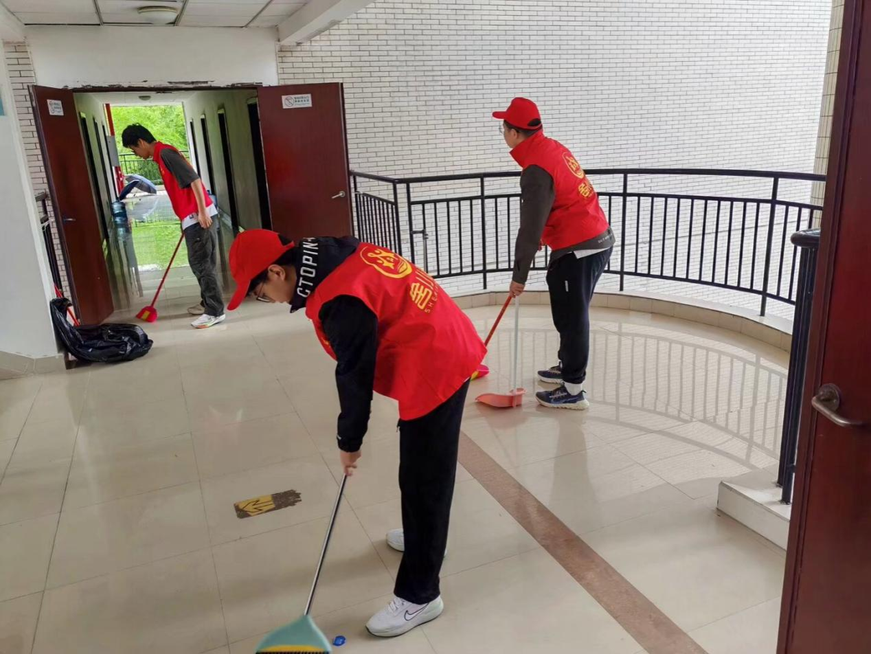 志愿者们被分成两组。第一小组重点清理公共区域,包括走廊、楼梯和楼层入口区。志愿者们用扫把仔细清扫灰尘与杂物,用湿抹布认真擦拭楼梯扶手和墙壁上的污渍,用拖把对地面进行了彻底的拖洗。清理过程中,志愿者们勤恳认真、细致入微,工作成效显著,宿舍楼面目一新。