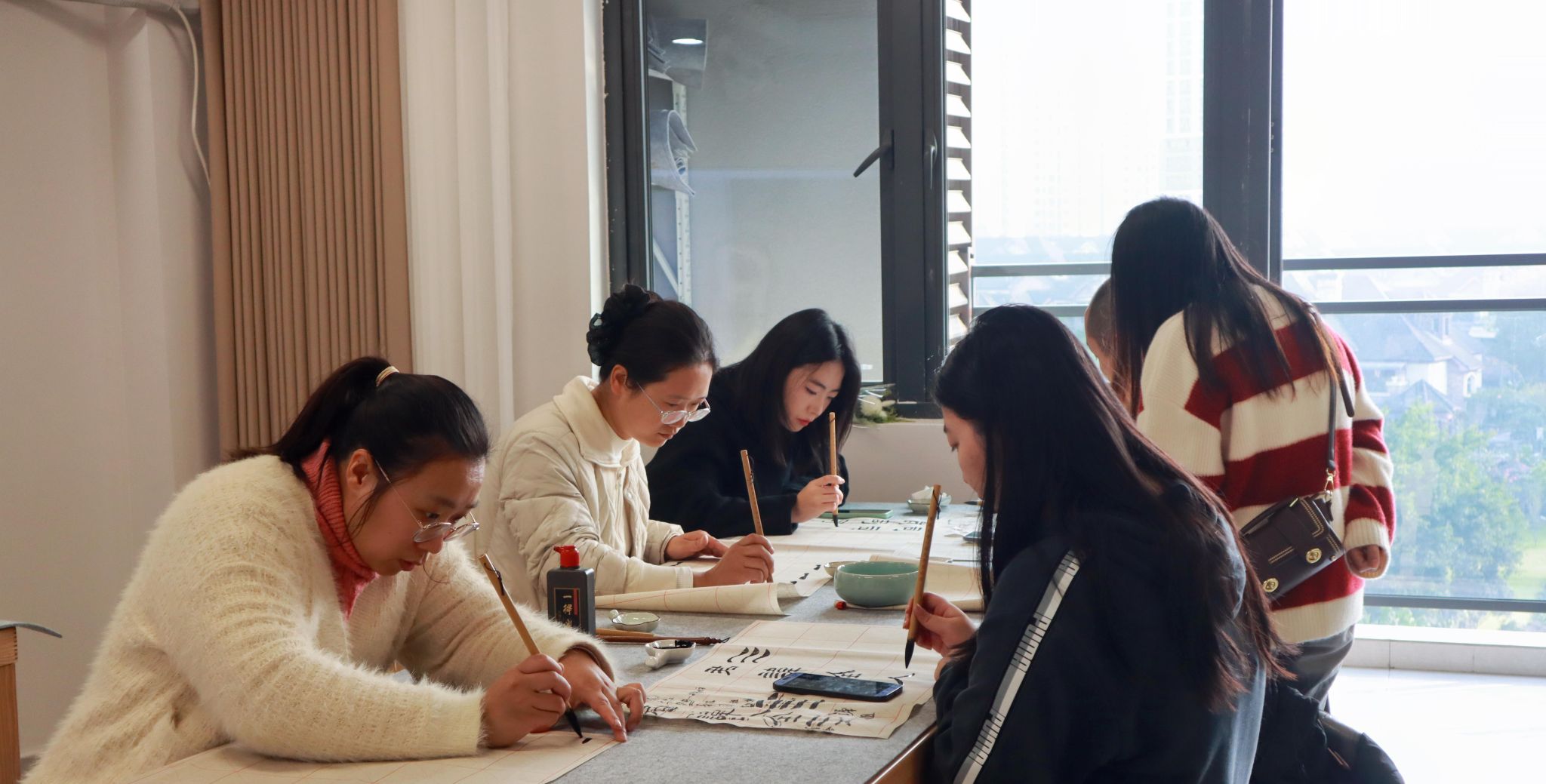为弘扬中华优秀传统文化,丰富校园美育生活,2025年11月29日下午,由“一站式”学生社区传统文化熏陶项目组主办的“国学风尚—书法教学”第48期活动在科学城校区虎溪校园荷园三栋531活动室成功举办。活动邀请书法老师鲁宇亲临授课,带领同学们沉浸于墨香世界,感受书法艺术的独特魅力。